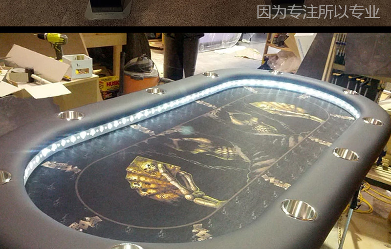 Новый производитель с светодиодными ночными фонарями, Техасский покерный стол, со стальной чашкой с фиброзной ручной подголовкой, настройкой на заказ на рабочем столе всего стола.
