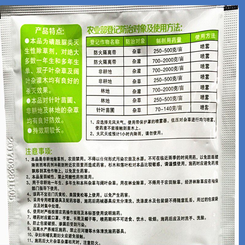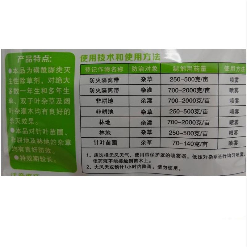 5. Беспорный питомник для хвойных питомников:Мезульфурон обладает хорошей селективностью для хвойных деревьев, таких как сосна, сосна, сосна, сосновая сосна, орхидея, и подходит для выращивания молодых лесов этих видов деревьев.