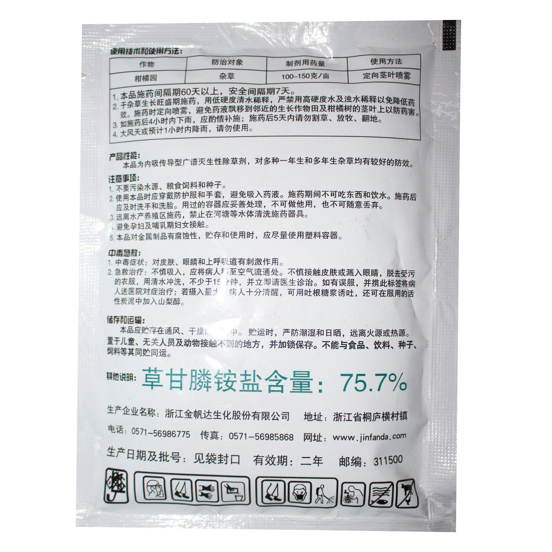 Jinfan 75,7%травяной глиф -глиф аммоний соленый порошок 757