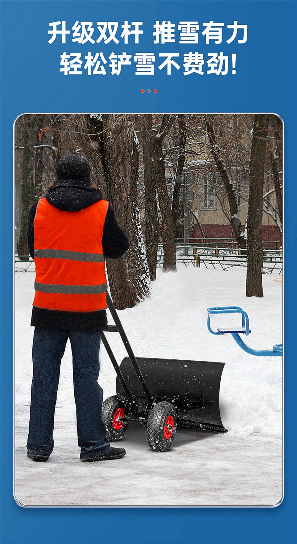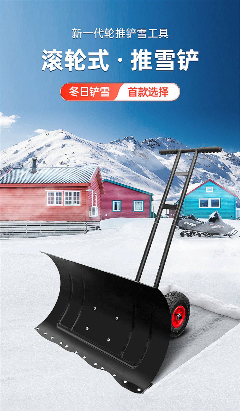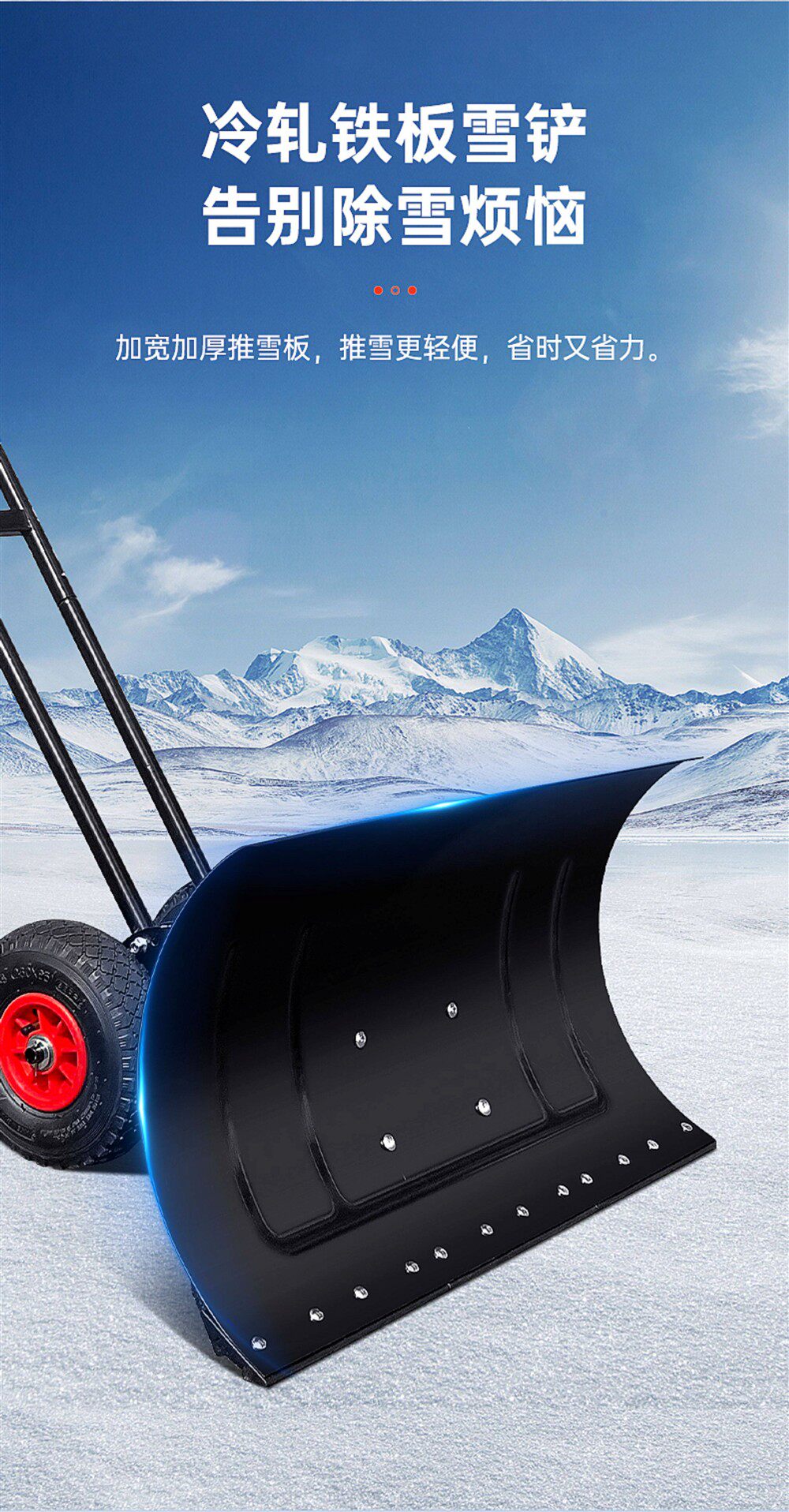 Большой снегоотталкиватель на колесиках. Железная доска для удаления снега с двойной опорой, очень большая модель SK.