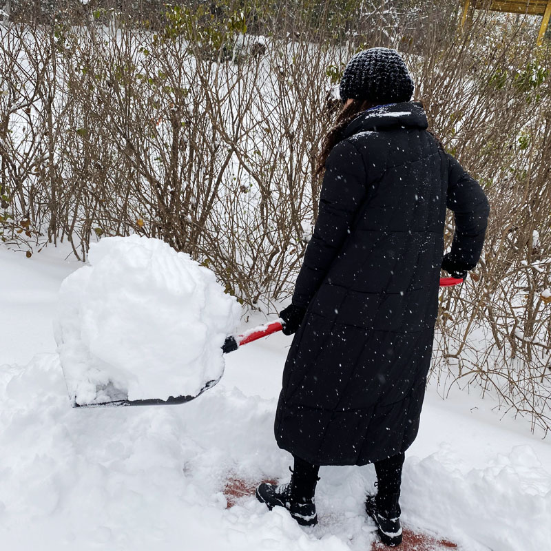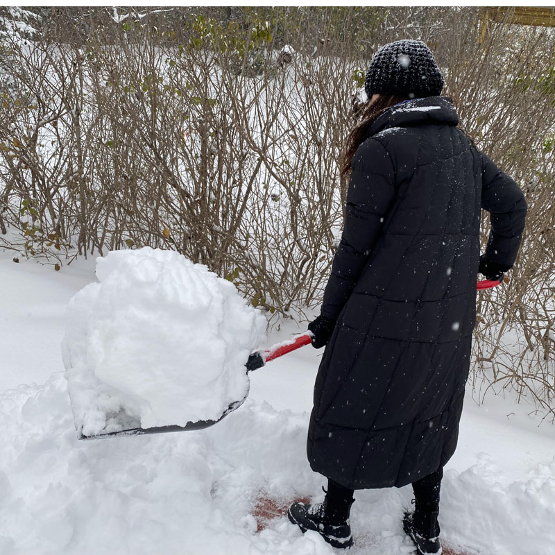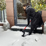 Снятие снега во дворе, разобранная погрузка, большая утолщенная очистка снегопада дороги снежного инструмента Ледяная лопата.