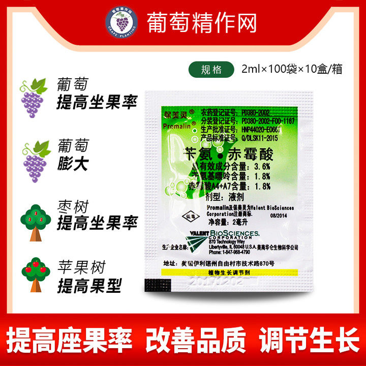| Четыре сезона | 10,000 | Улучшение плодоношения, высокая гипертрофия, улучшение качества, на раннем этапе урожая и исправить форму фруктов | Житель молодых фруктов, распыляющий один раз каждые 2-3 недели, может распылять 2-3 раза | 20-30% |