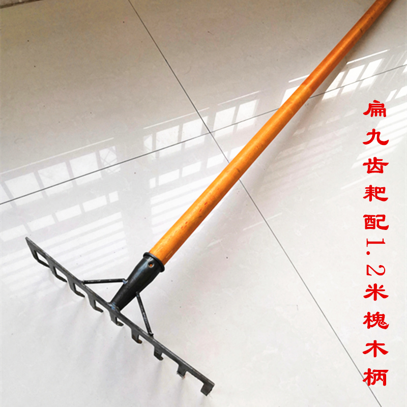 - Плоская -зубная встроенная девять -зубчатые грабли+1,2 метра саранча деревянная ручка
