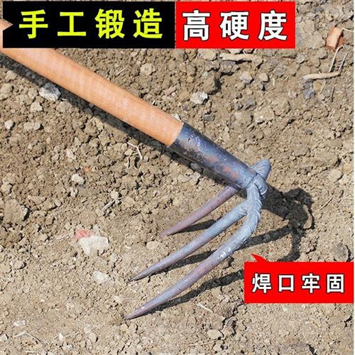 Железные грабли с тремя предметными стальными грабли схватывают садовые овощи и свободные грабки почвы домой