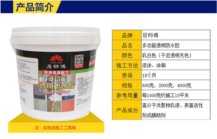 居师傅 Белая прозрачная гидроизоляция Внутренняя и внешняя стена поверхностная крыша трещины терраса