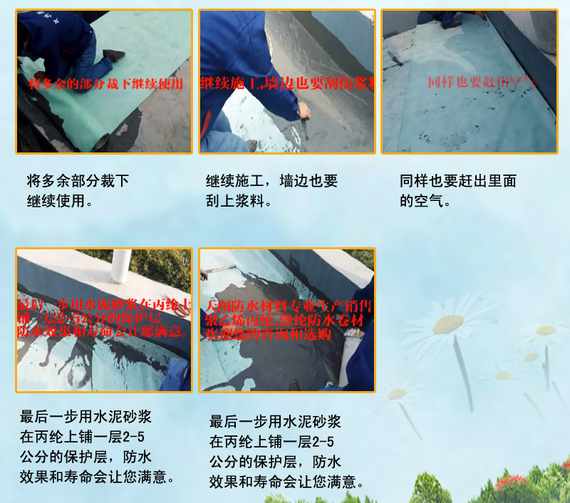 (6) Полимерную гидроизоляционную мембрану следует наклеивать сразу после нанесения цементного клея, чтобы предотвратить потерю воды в клее и повлиять на качество склеивания.