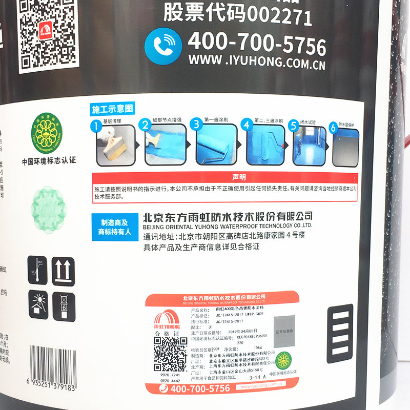 Водонепроницаемый радужный восточный yuhong 400 цвет высокий блюс водонепроницаемое покрытие материал ванной комнаты 15 кг нового продукта