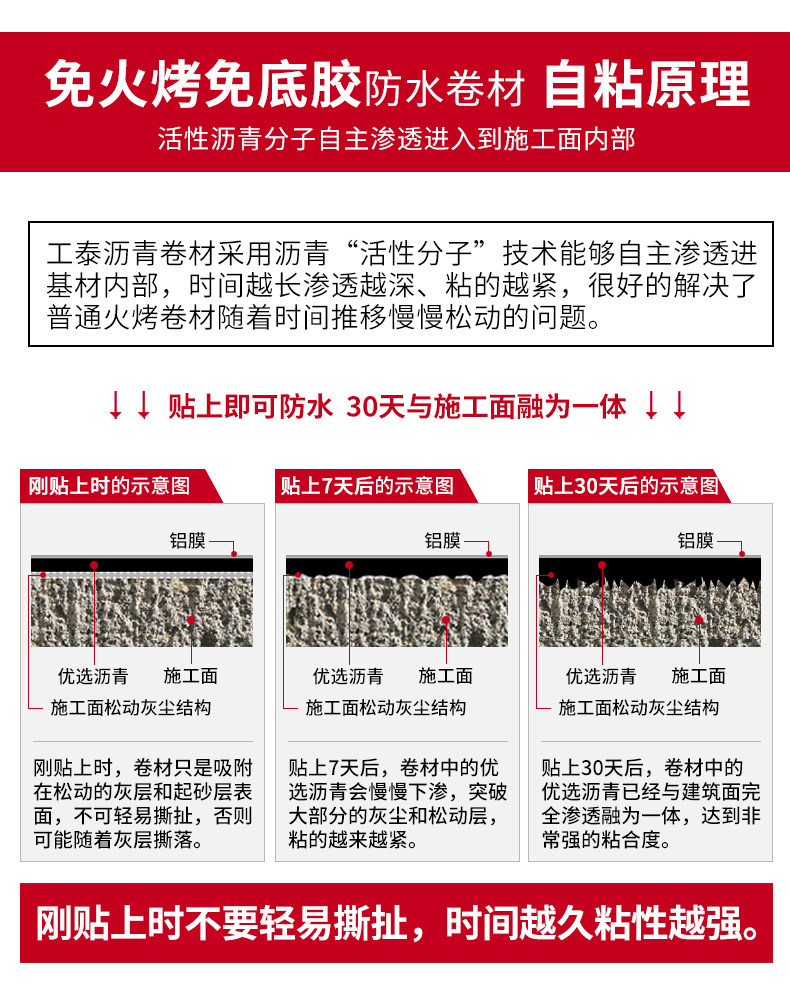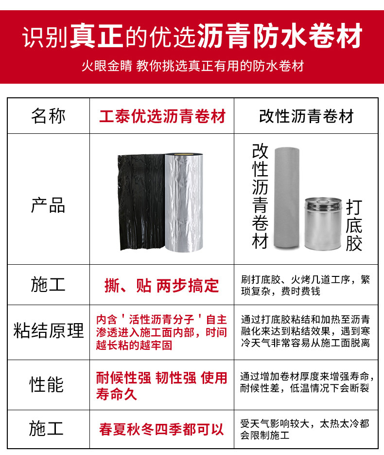 工泰 SBS Водонепроницаемые катушки крыши от липкой комнаты заблокировали ленту на верхней части сильного асфальтового водонепроницаемого материала