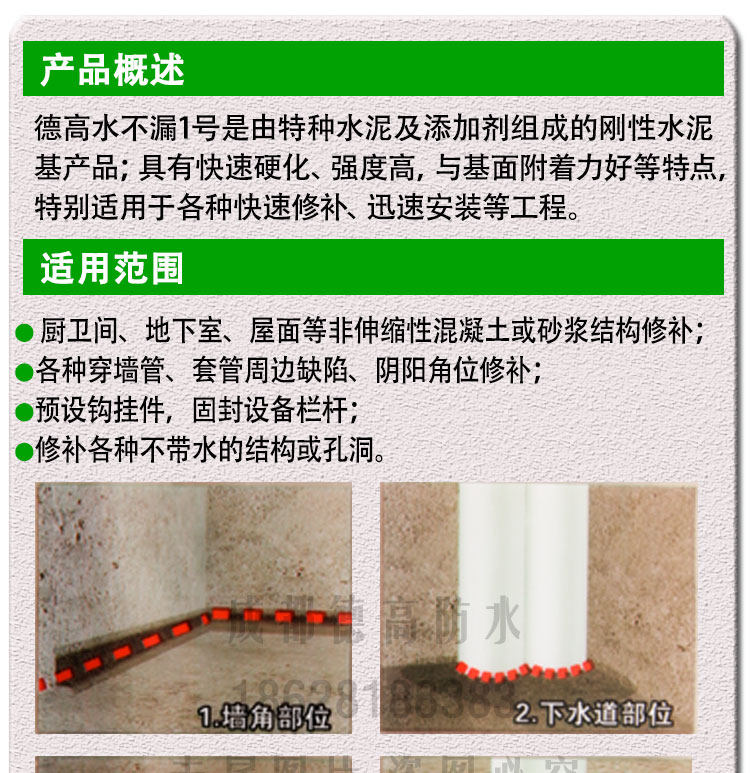Вода без утечки № 1 Демонстрация Ван -де -водонепроницаемые углы строительных трубопроводов восстанавливает укрепленные водонепроницаемые вспомогательные материалы