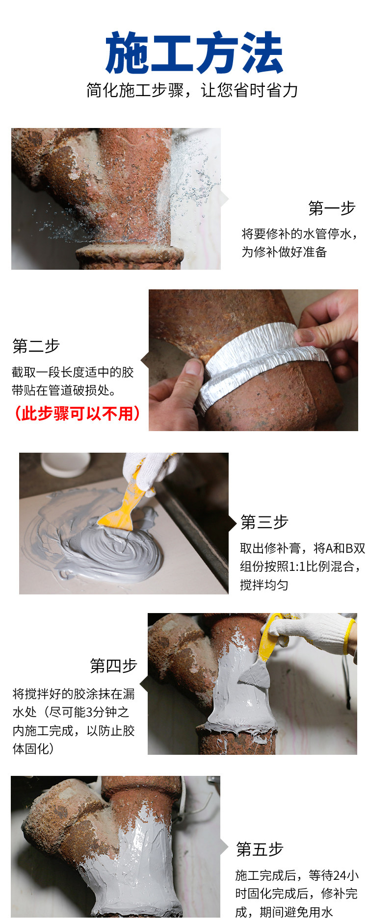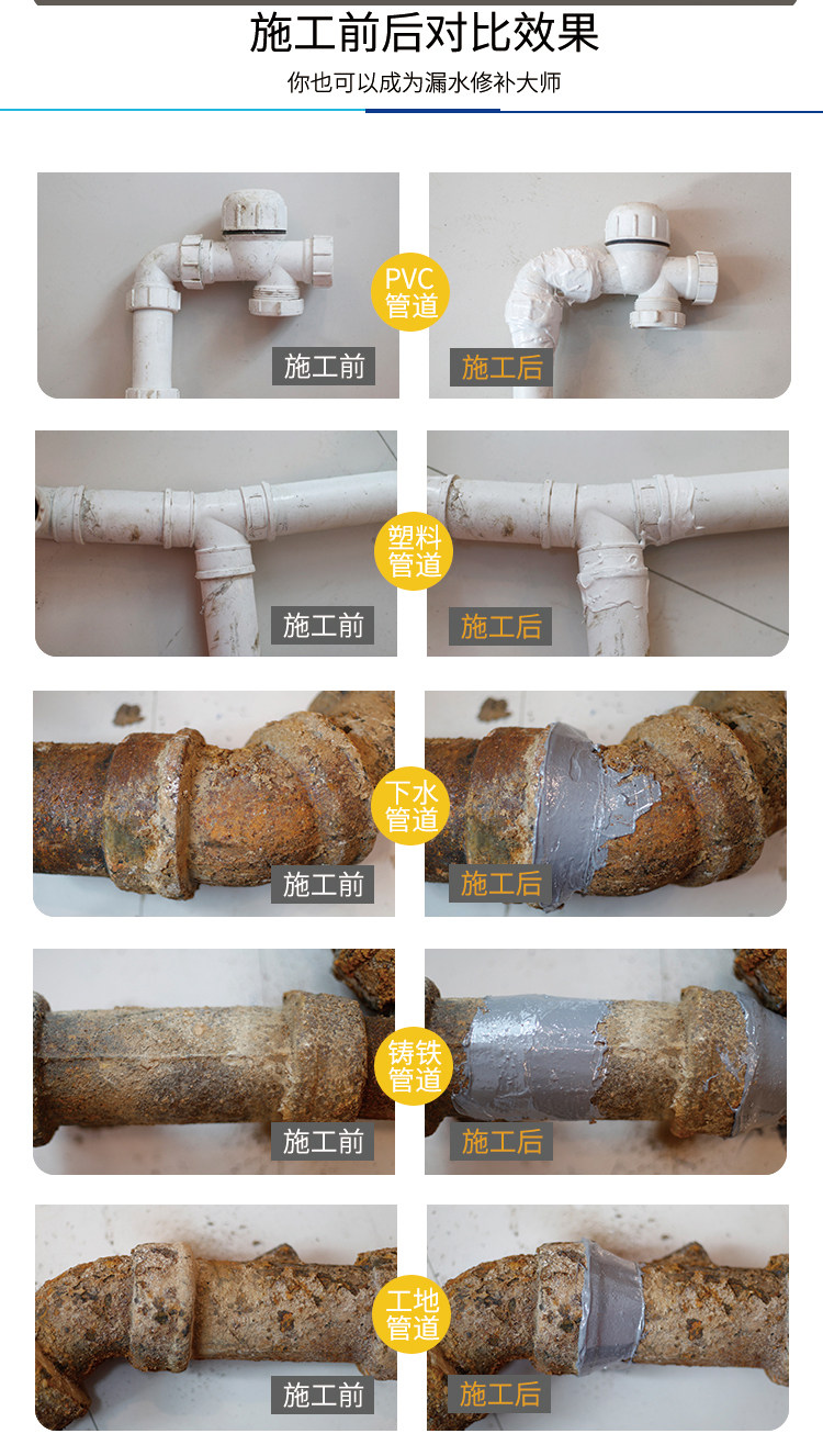 Утечка водопроводов, утечка воды и водонепроницаемые наклейки на ленту и наклейки на утечку, мощный уплотнительный чугунный артефакт