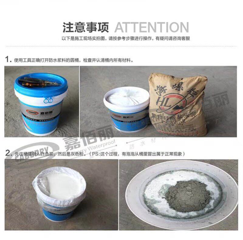 2) Поместите полимерные цементные базовые покрытия и порошок в соответствии с доли 1: 1 (весовое соотношение), медленно добавьте цемент в жидкий контейнер и перемешайте с помощью электрического миксера. Время перемешивания составляет около 5 минут. Содержит смеси группы.