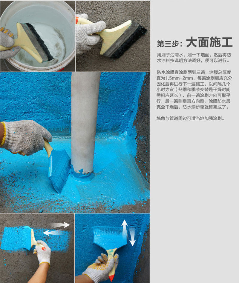 3) Для слабых частей и плоскостей, таких как углы инь и ян, задние полосы водопоя, водонепроницаемый слой следует использовать в пределах 300 мм каждой из плоскости.