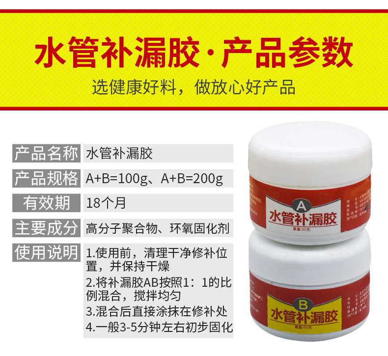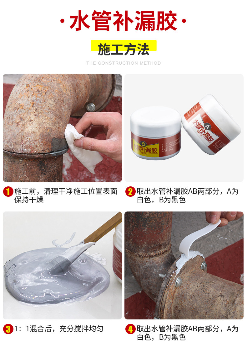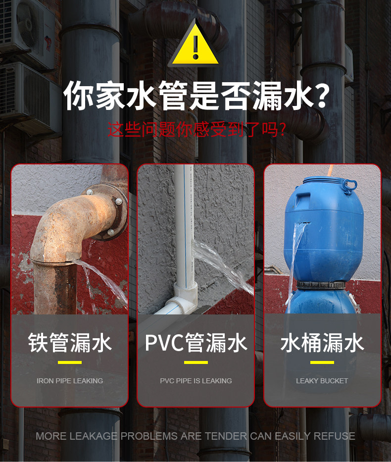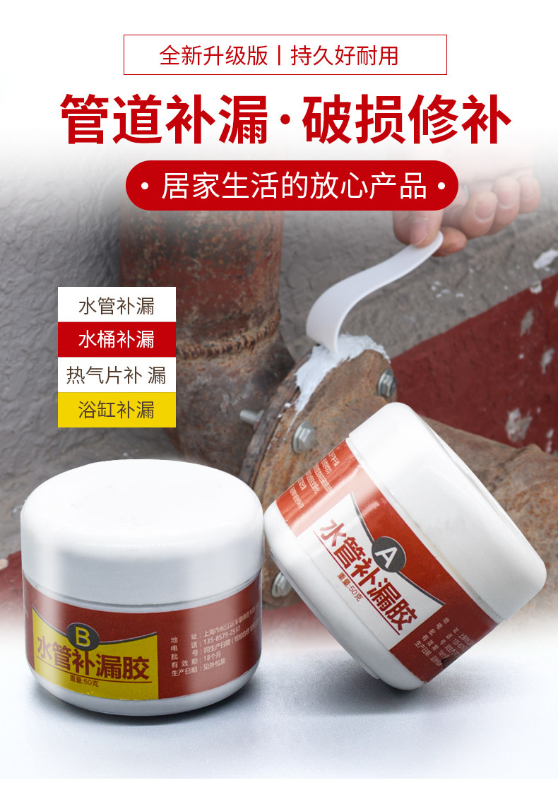 Утечка воды, клей для подключения, водяные чугунные PPR -трубы для ремонта клея, стальная пластиковая стальная грязь, водонепроницаемый нагреватель