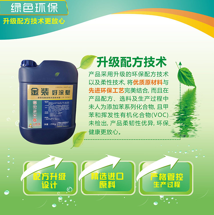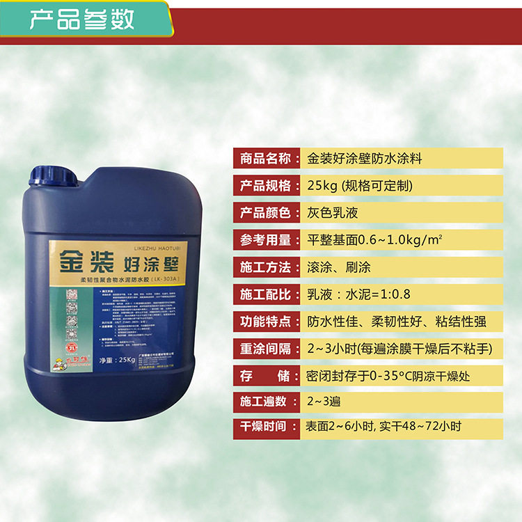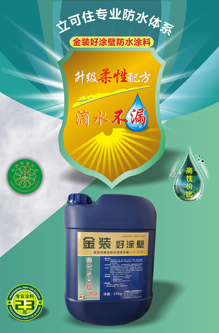Золотая стена -это новое поколение экологически чистых водонепроницаемых покрытий, которые цитировали водонепроницаемые материалы дома и за рубежом и развивались независимо.Этот продукт готовится с помощью высокой эмульсии и различных полимерных добавок.