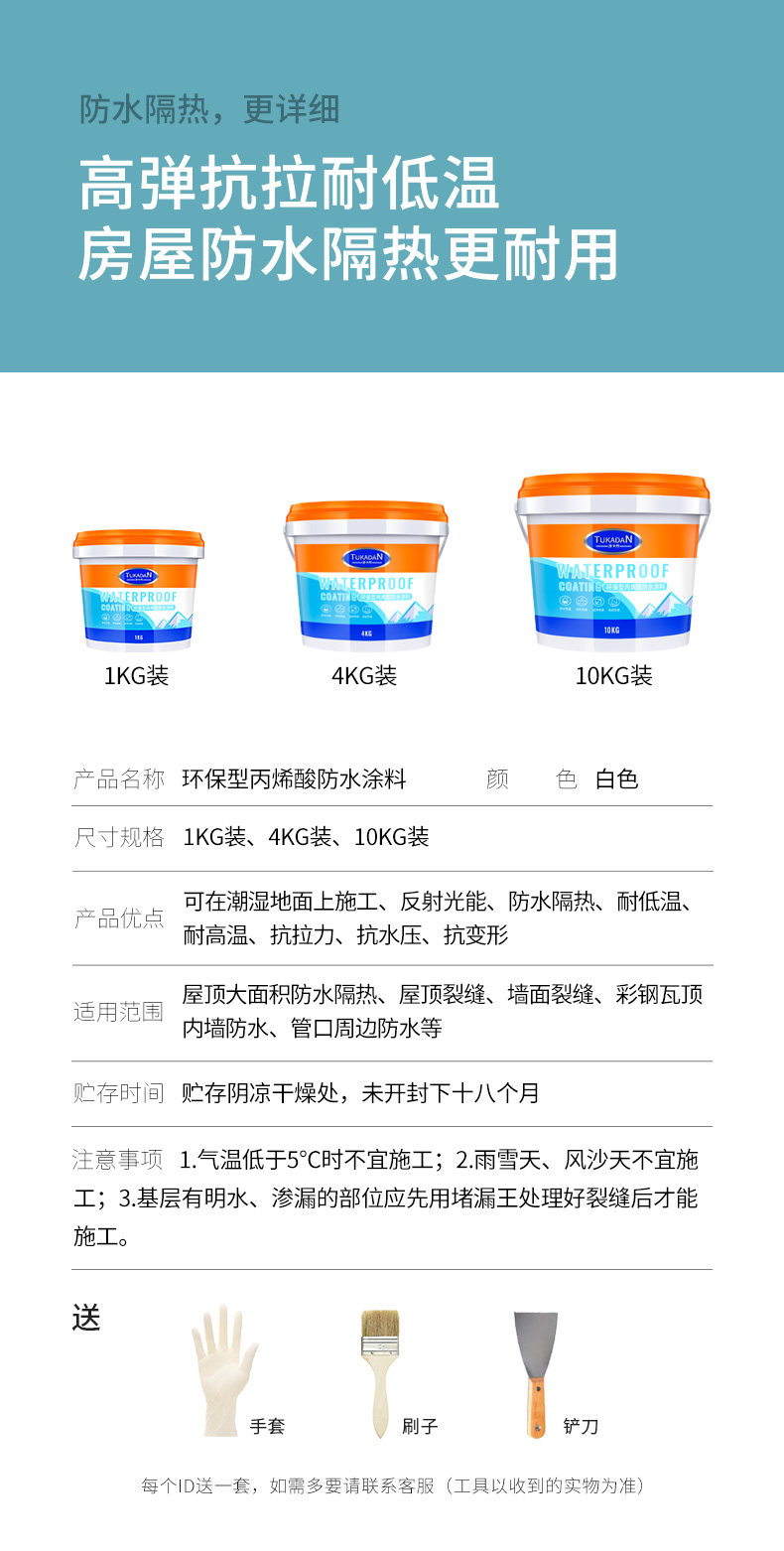 - [10 кг национальный стандарт] Инструмент доставки в крытый и наружный водонепроницаемые и изоляционные покрытия (около 20 квадратных метров)