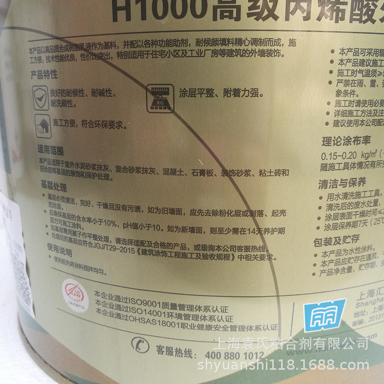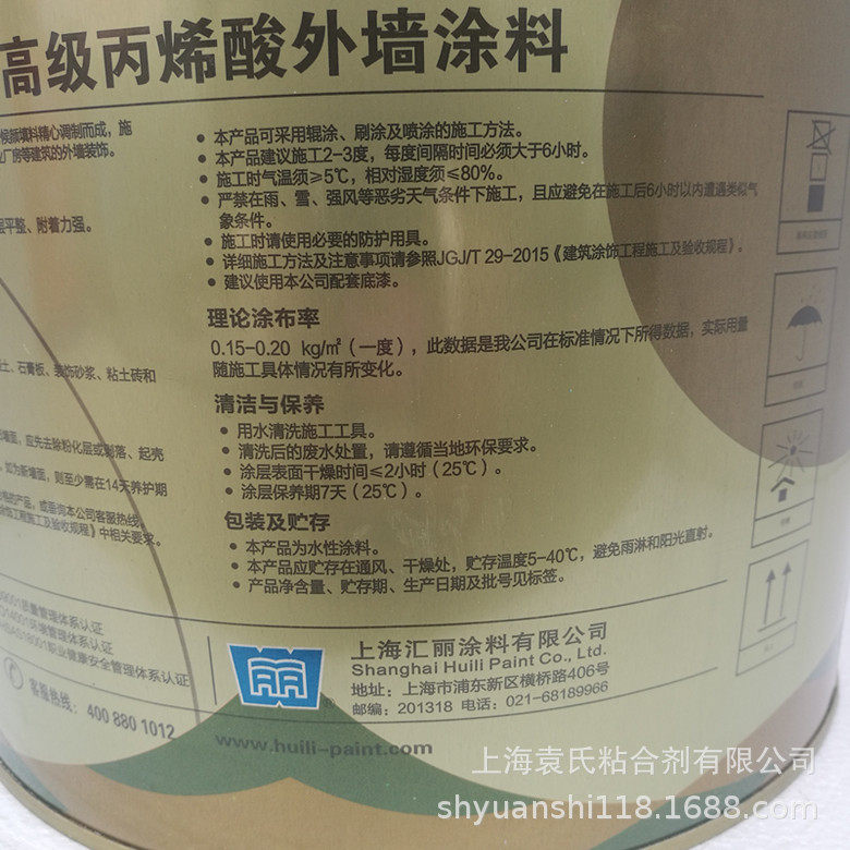 Huili Coatings H1000 Акриловые наружные настенные покрытия доступны для щелочной сопротивления, промывки, водонепроницаемое водонепроницаемое покрытие белое 20 кг