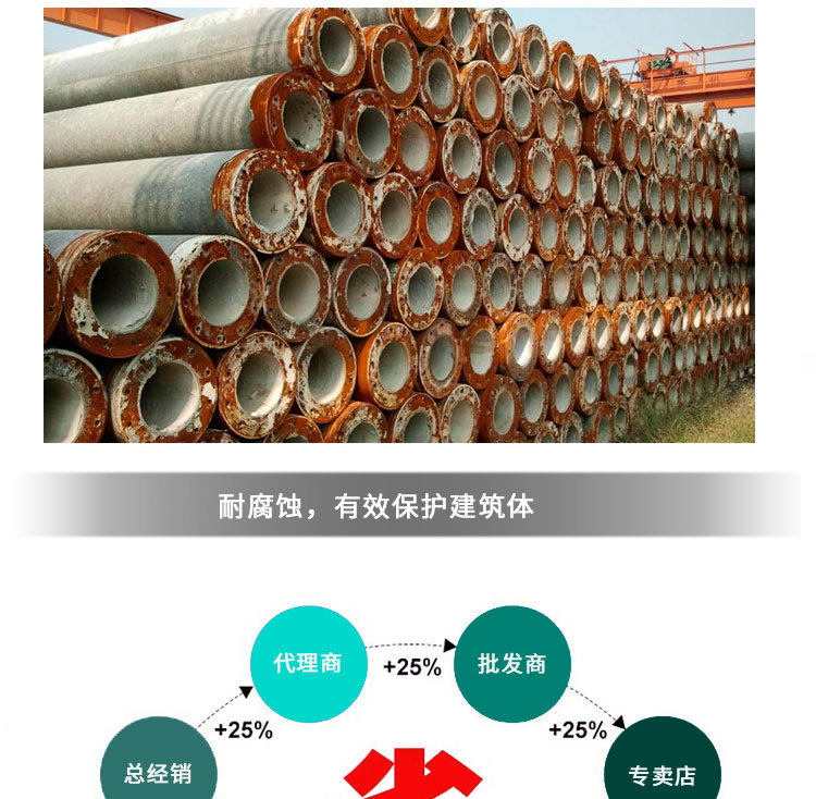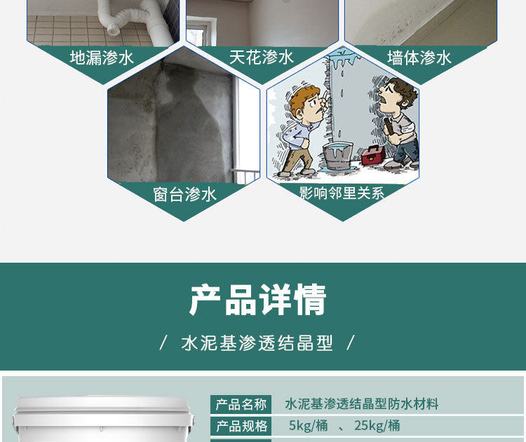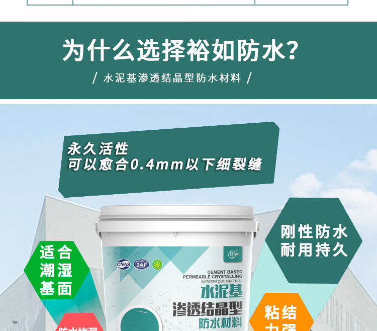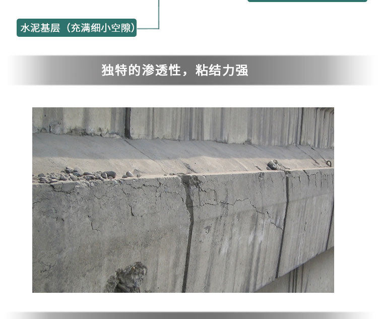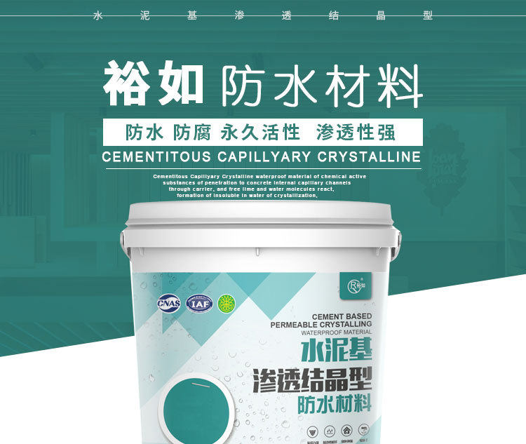 Активные химические вещества проникновения на основе цементного водонепроницаемых водонепроницаемых материалов проникают в капиллярные трубы внутри бетона через носитель, реагируют со свободными молекулами извести и молекулами воды, образуя кристалл нерастворимой воды. Бетон плотный, предотвращая проникновение канала воды, тем самым играя на постоянном уплотнении бетона.