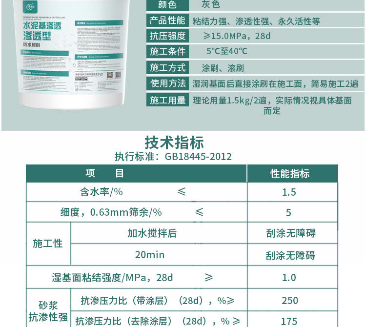 Водонепроницаемое покрытие цементное основание инфильтрация хрустальная хрустальная ванная комната ванная комната кухня балкон бассейн водонепроницаемый и утечка