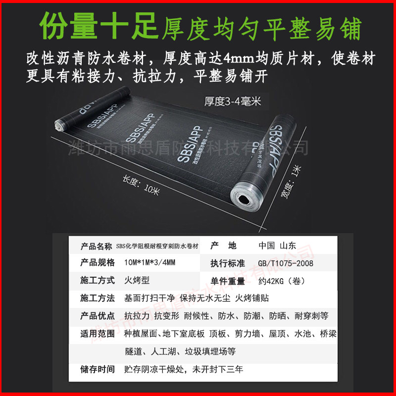 4 толстые SBS Химический корень -устойчивый к корневой пунктире водонепроницаемые водонепроницаемые рулоны, флома из асфальта -масля