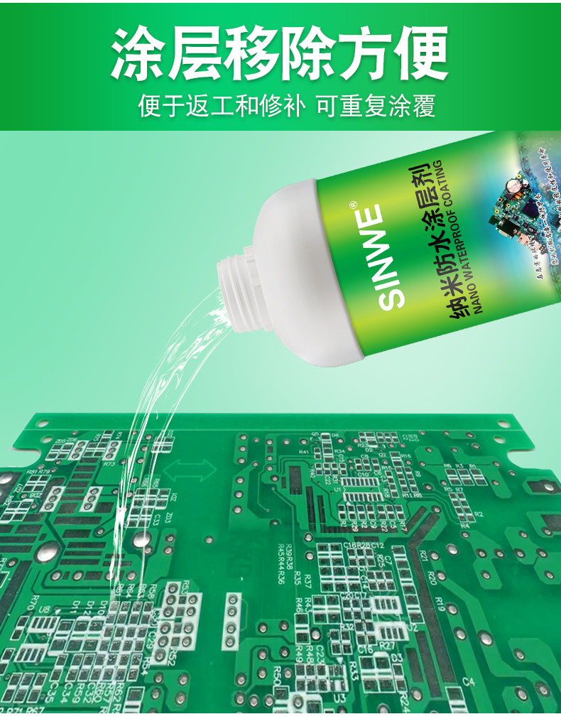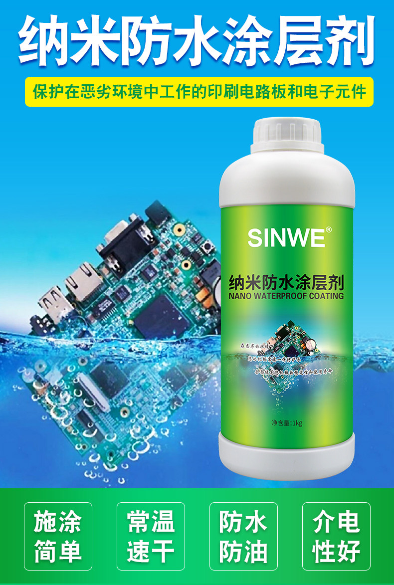 Нано -водонепроницаемое покрытие IPX7 Плата ПХБ Трехсторонняя высокая температура, безвкусная супергидрофобная влажность -защитный раствор
