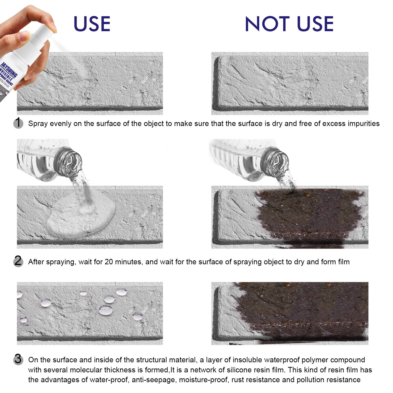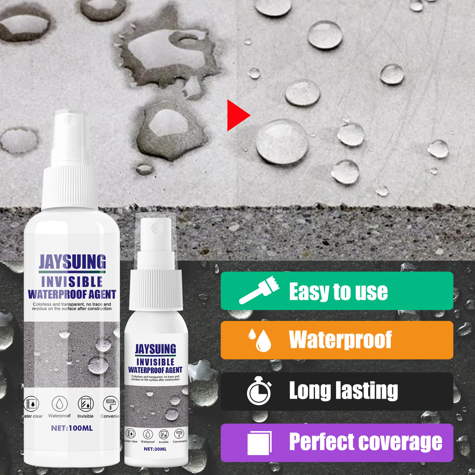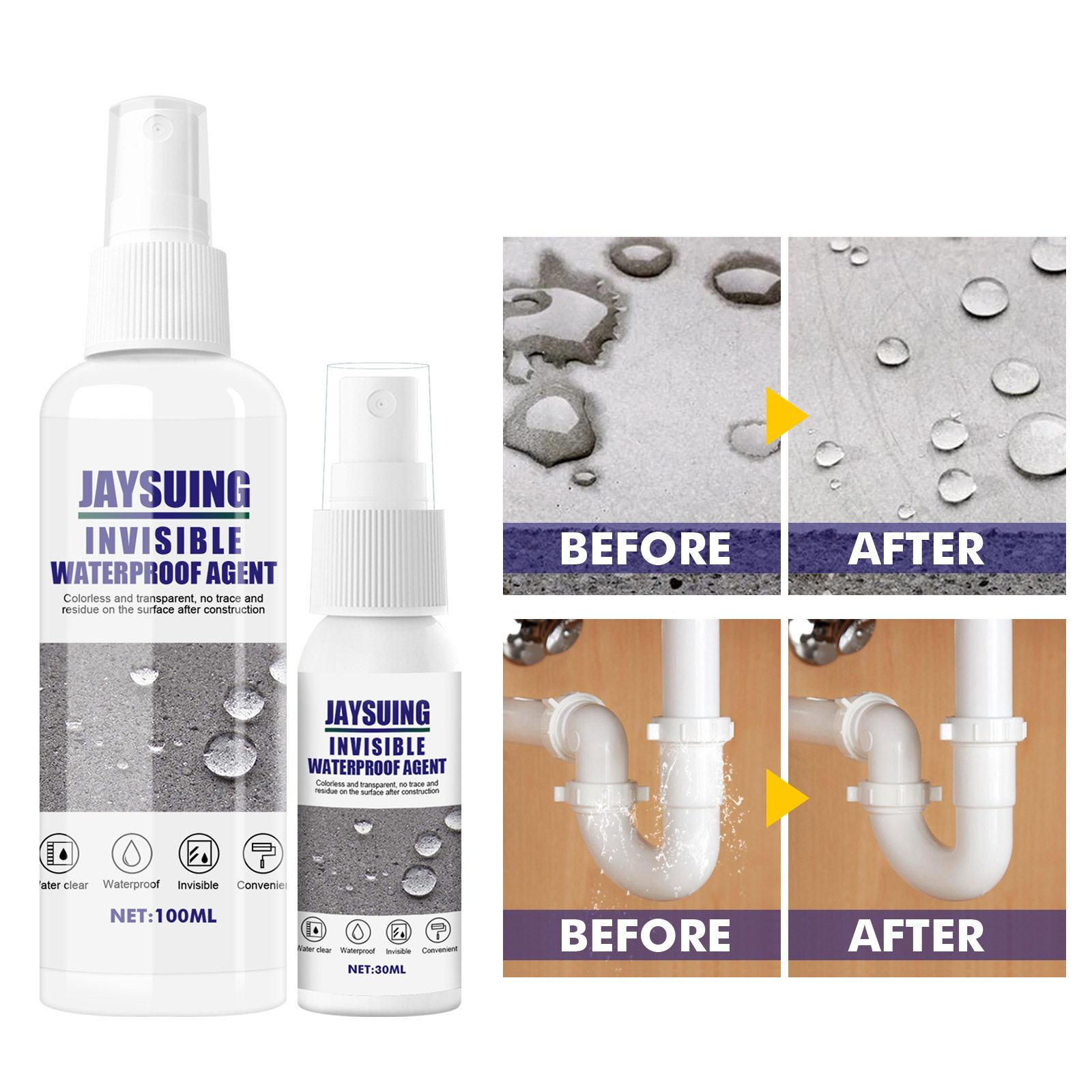 Жайки невидимых водонепроницаемых анти -охвативных, инфильтрация, прозрачная распыляющая пластиковая плитка, водонепроницаемое пополнение короля