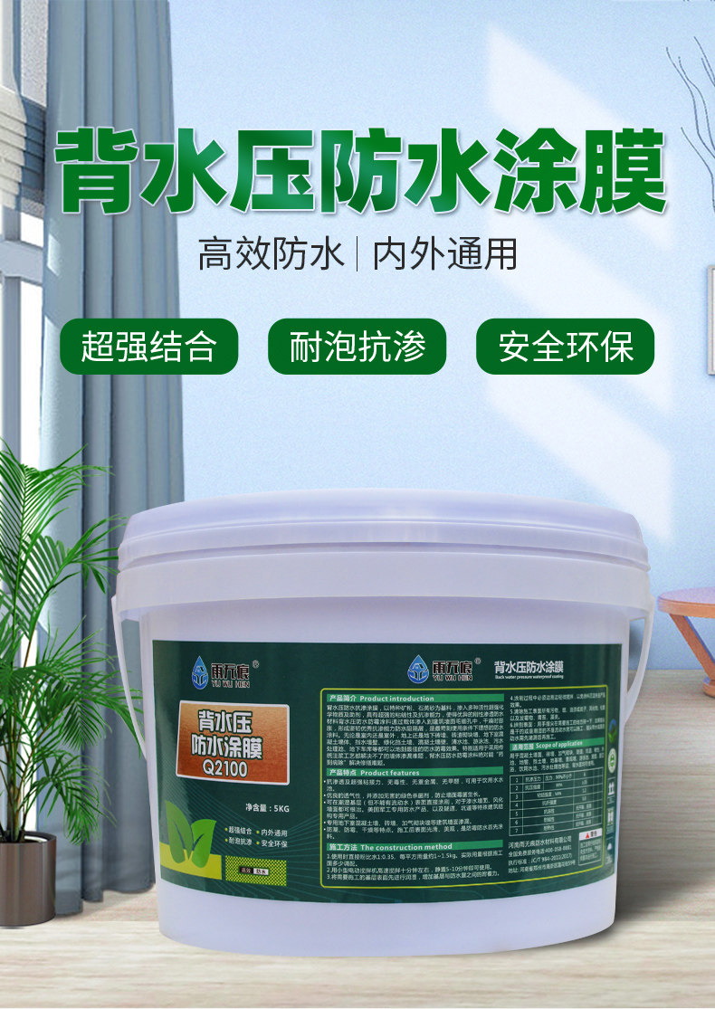 Водонепроницаемое покрытие под давлением обратной воды без следов дождя, шахта лифта, потолок, бассейн, внутренняя стена, задняя поверхность, водонепроницаемый материал