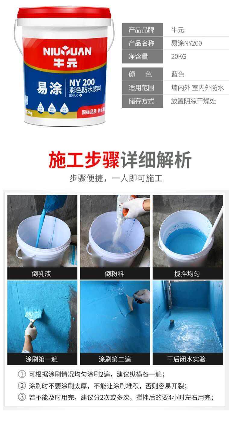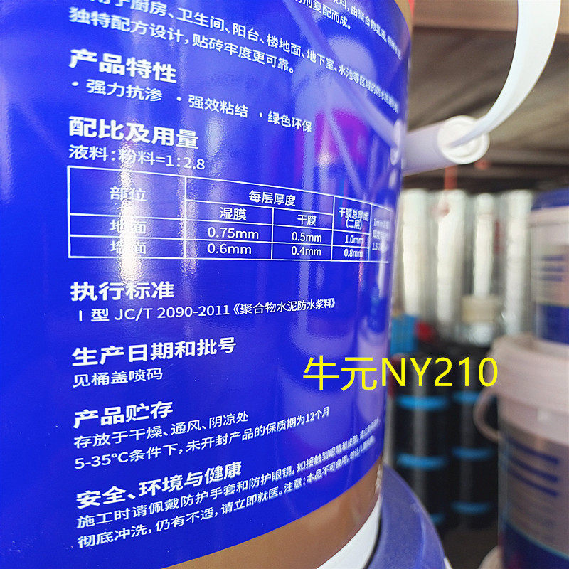 牛元 NY200 Окрашенные водонепроницаемые суспензии JS Polymer Cement NY310 Гибкий устойчивый к трещина