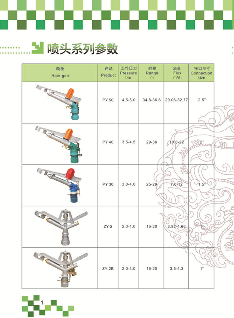4. Плезной распылитель спрей с распылителем на длинном распылении, а радиус может достигать 30-95 метров, уменьшая укладку трубопроводов и удобную конструкцию;