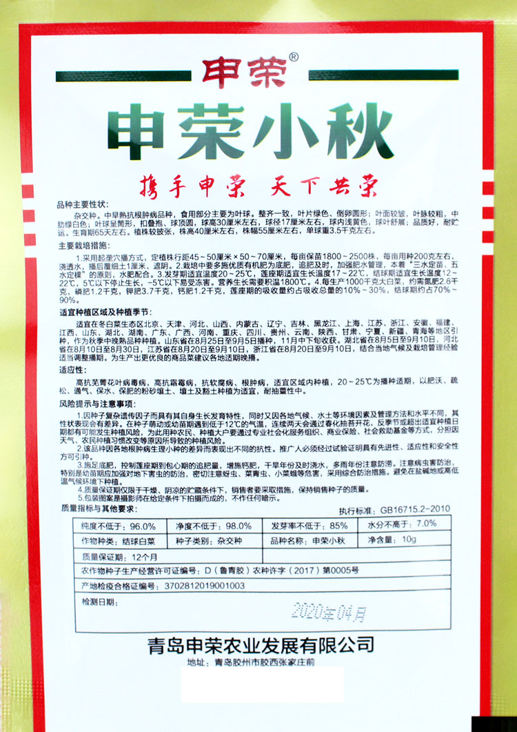 Shandong Huangxin осенние семена семян семян капусты четыре сезона