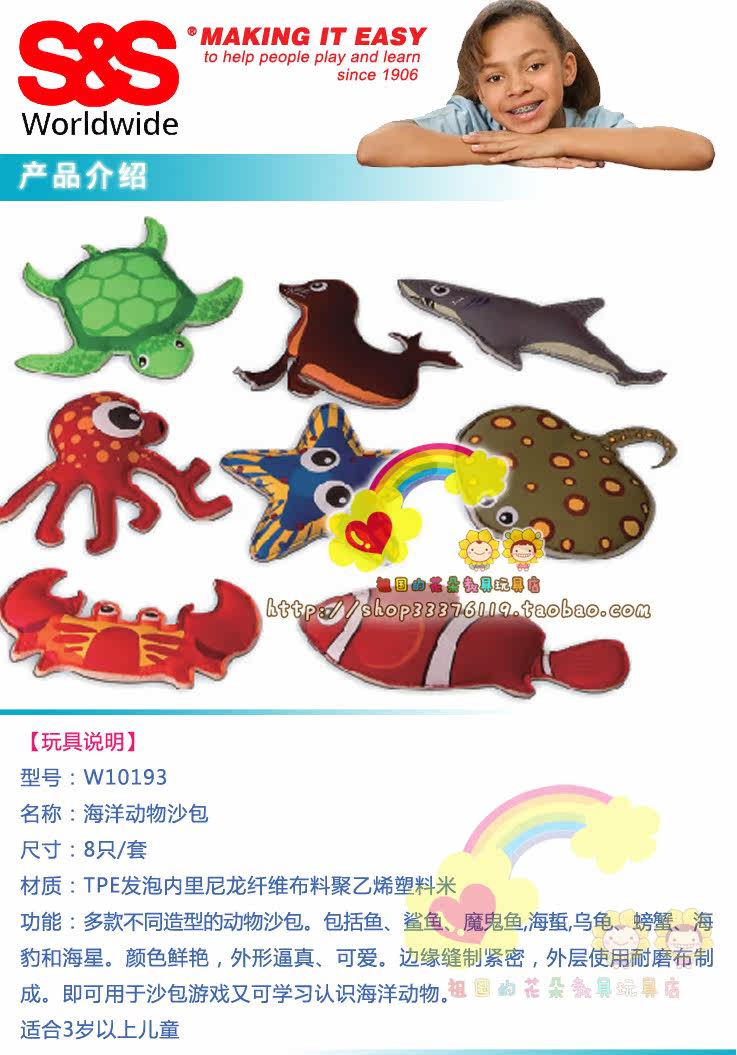 Детский познавательный морской мешок с песком с животными, 8 шт