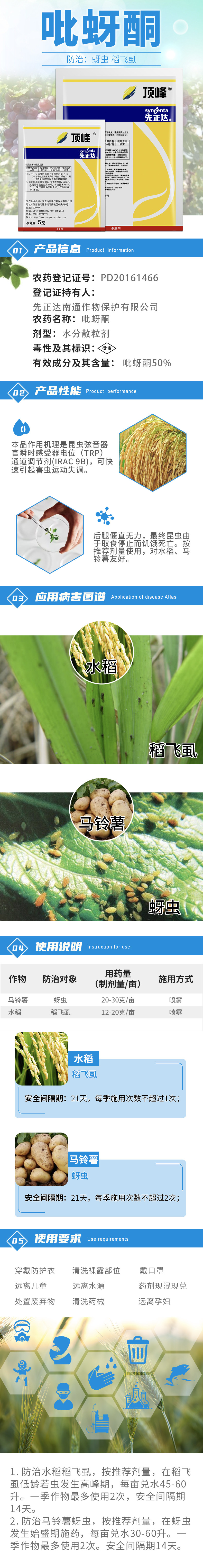 Пик Сяньчжэнда 50%пиродидон рисовые фермеры, картофельный картофельный картофель пестициды пестициды Пестициды 5G100G