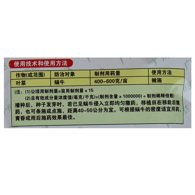 1. Овощи, хлопок и табак: нанесите от 250 до 500 граммов на му земли.Распределите пестицид равномерно, чтобы слизнякам и улиткам было легче вступить в контакт с пестицидом, тем самым улучшая сохранность рассады и эффективность контроля.