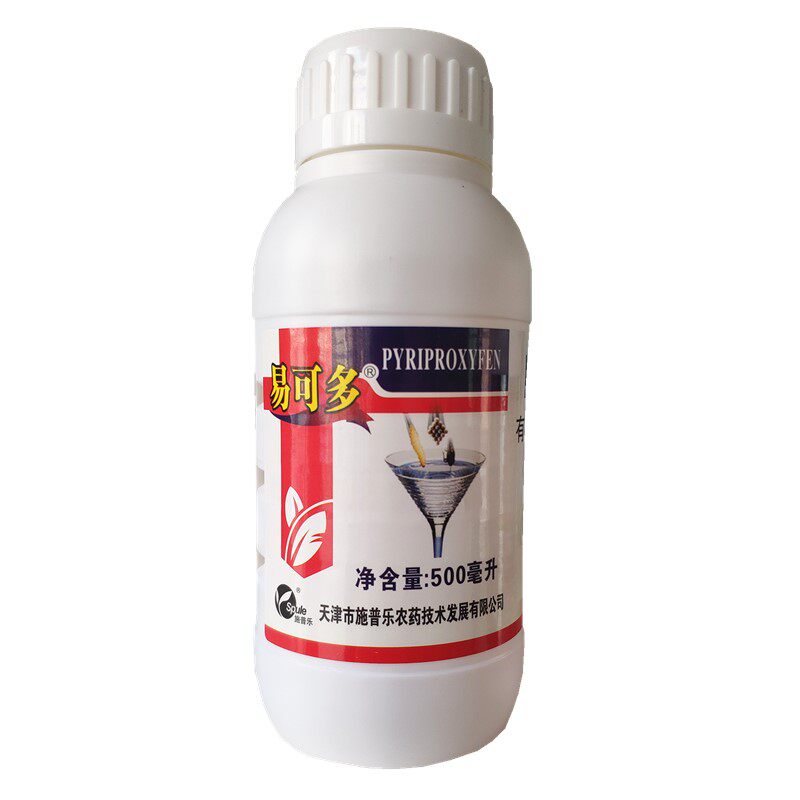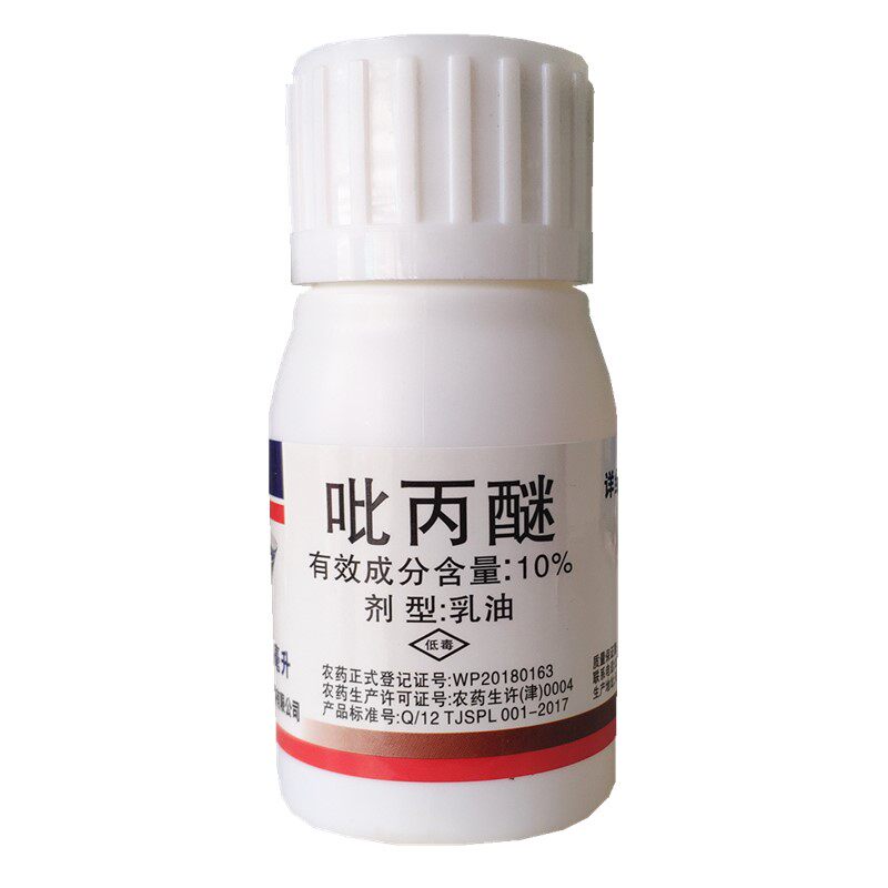 Пирипроксифен — малотоксичный инсектицид, регулятор роста фениленэфирных насекомых и новый инсектицид, аналог ювенильного гормона. Механизм его действия заключается в угнетении деятельности глоточного тела насекомых и нарушении биосинтеза экдизона.Пирипроксифен может эффективно подавлять метаморфоз развития, окукливание, появление и формирование взрослых особей вредителей.Оказывает эффект уничтожения яиц и личинок чешуекрылых вредителей. Он оказывает хорошее овицидное действие на сосущих и сосущих вредителей ротового аппарата, таких как листоблошки, белокрылки, щитовки и большинство других вредителей. Он также может подавлять окукливание и появление личинок комаров и мух. Это хороший гигиенический инсектицид.
