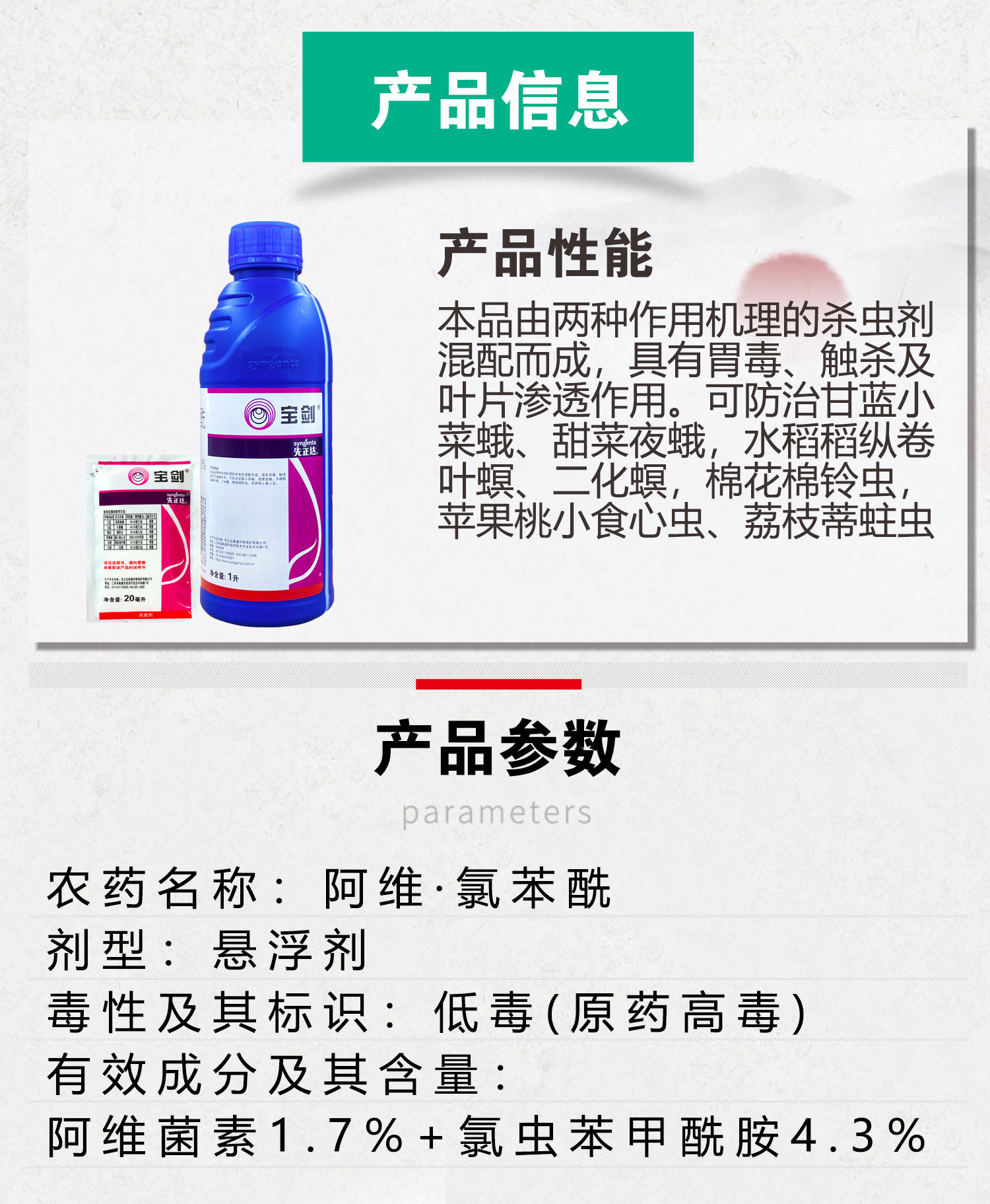 先正达 Меч Avi Chlorbenyl 6% зеленый червя сердечный червя рисовый лист ролик инсектицид 20-1 л.