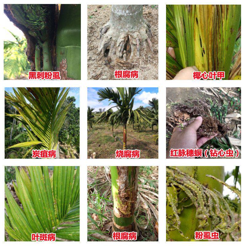 Арека ореховое дерево инсектицид сердечный червя кокосовый сердечный лист шкала доспехи насекомые желтые желтые листья пестициды насекомые Комбинация