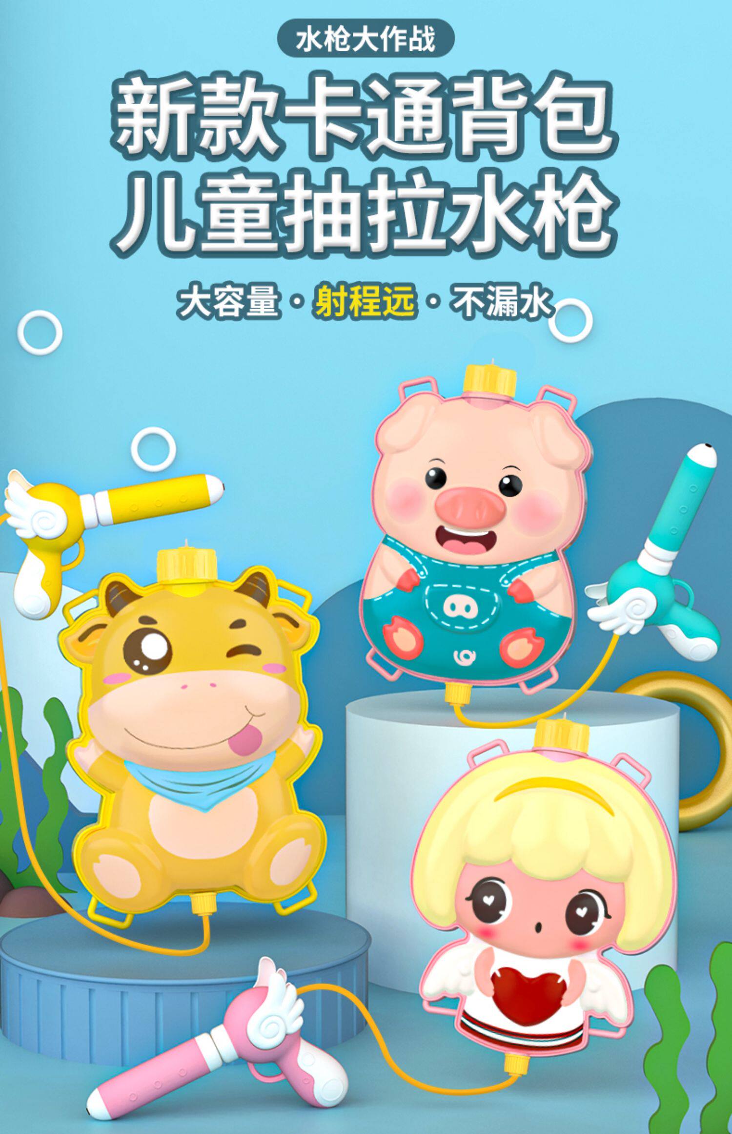 - Рюкзак, водный пистолет, бегемот
