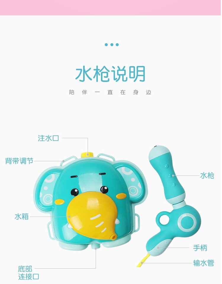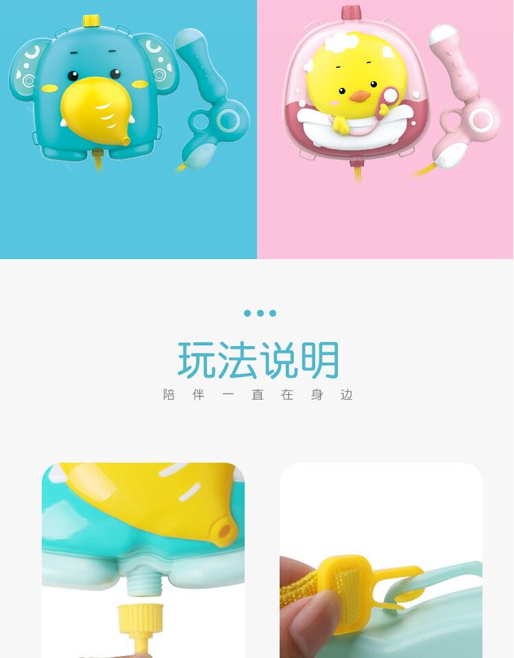 - Маленький рюкзак, водный пистолет, слон