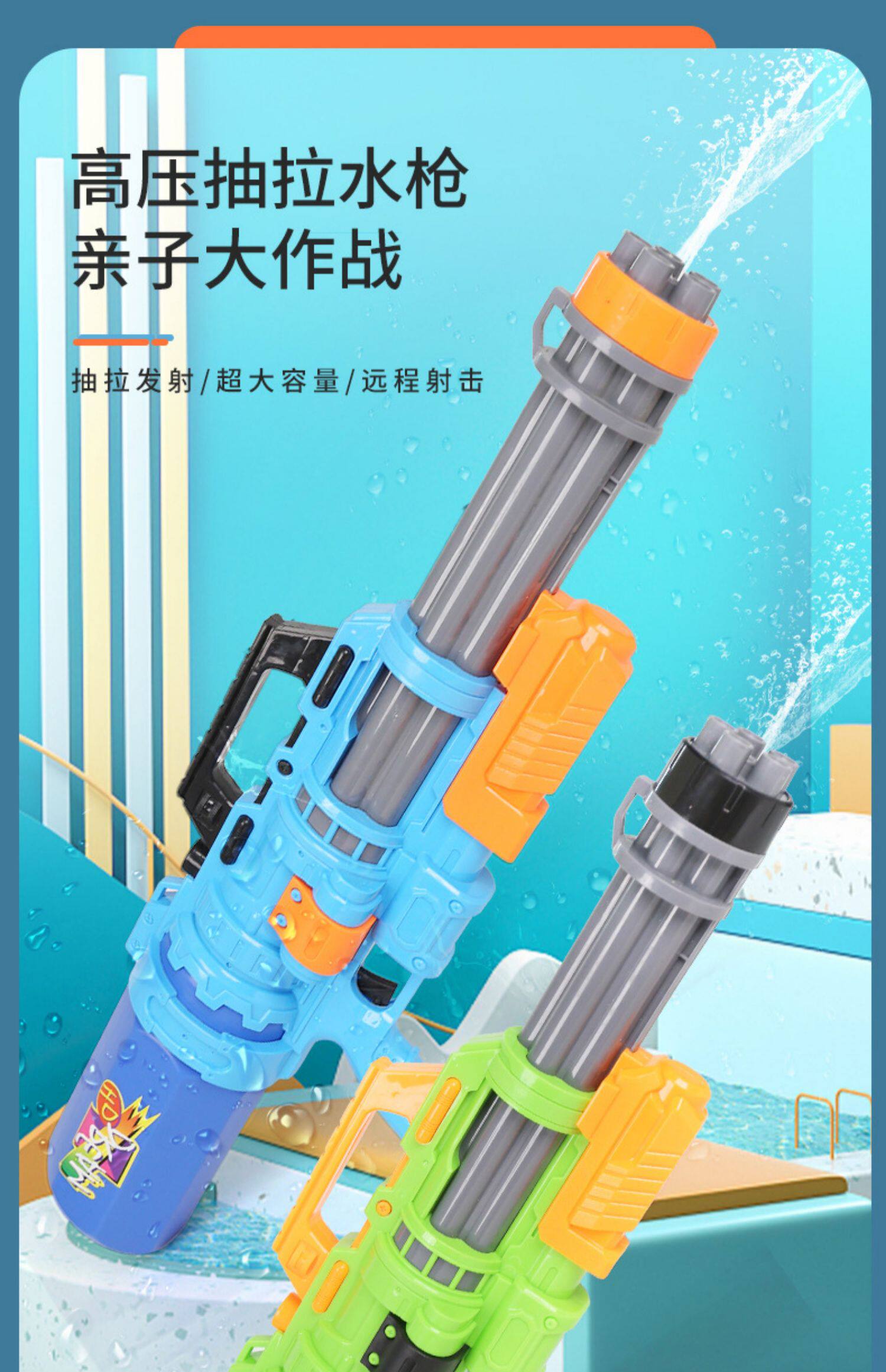 Воздушный насос, вместительный и большой водный пистолет для детей и взрослых для игр в воде, 3-6 лет
