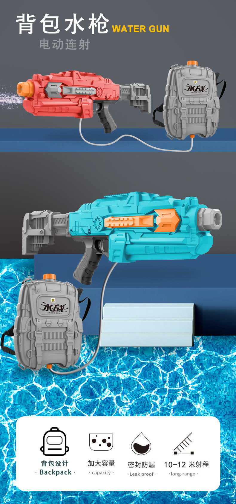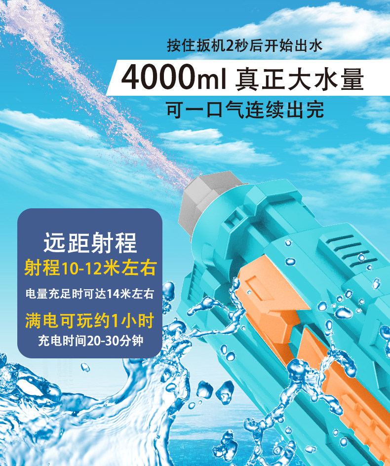 Электрический водный пистолет, игрушка для игр в воде, вместительный и большой автоматический рюкзак, автоматическая стрельба