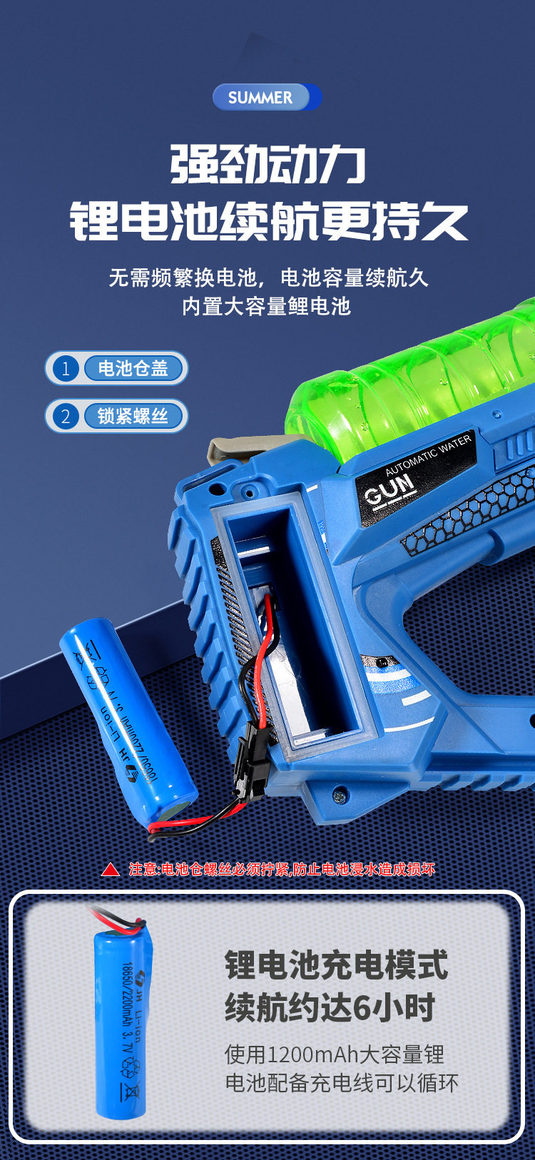- Легкий электрический синий водный пистолет для воды, зарядная версия