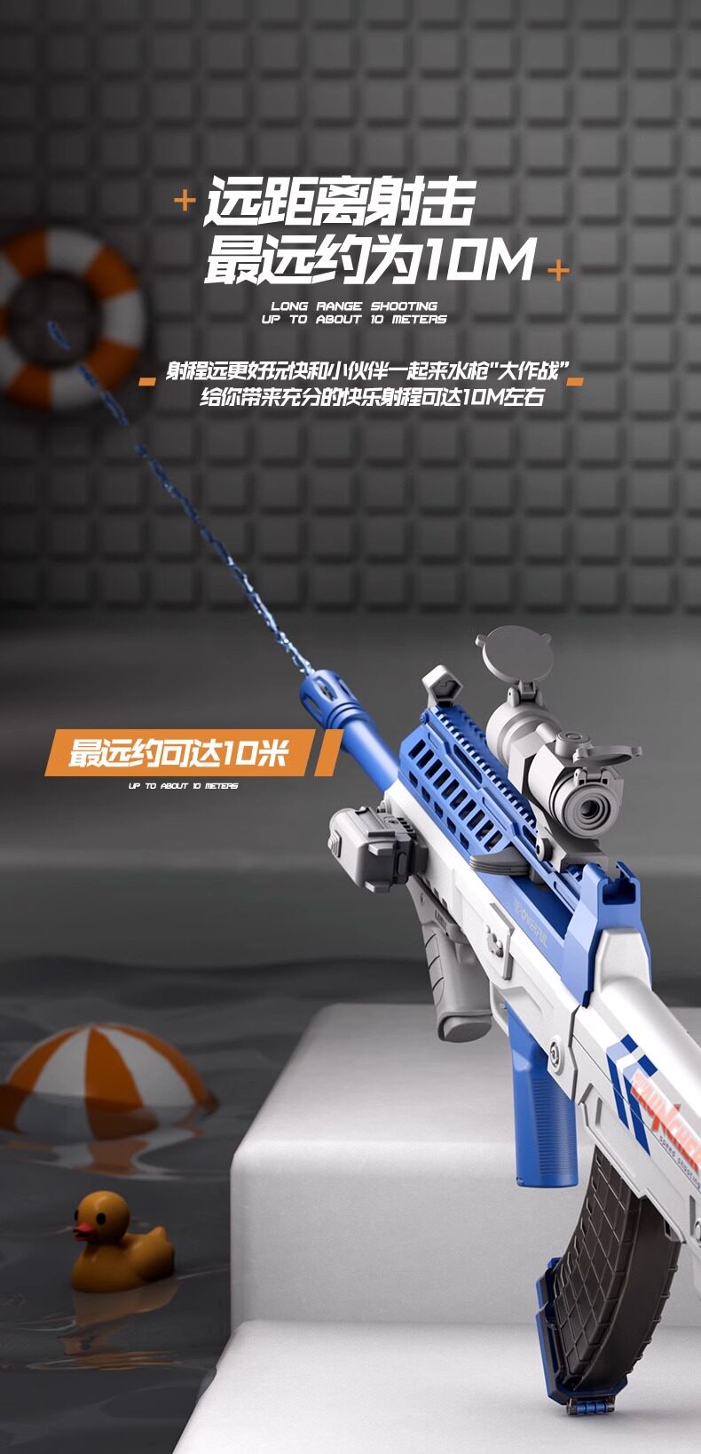 - Синий, 53 см, 500 мл, автоматическая стрельба