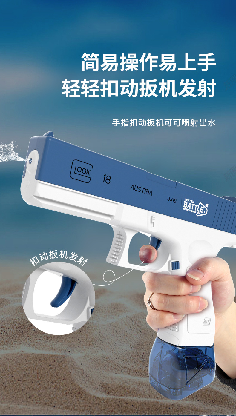 Электрический водный пистолет для воды, автоматическая игрушка, глок для игр в воде, коллекция 2023, наука и технология, автоматическая стрельба, полностью автоматический