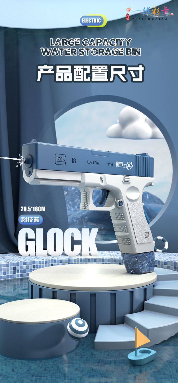 Электрический водный пистолет для воды, игрушка, автоматический глок с аксессуарами для игр в воде, магазин, наука и технология, автоматическая стрельба, полностью автоматический