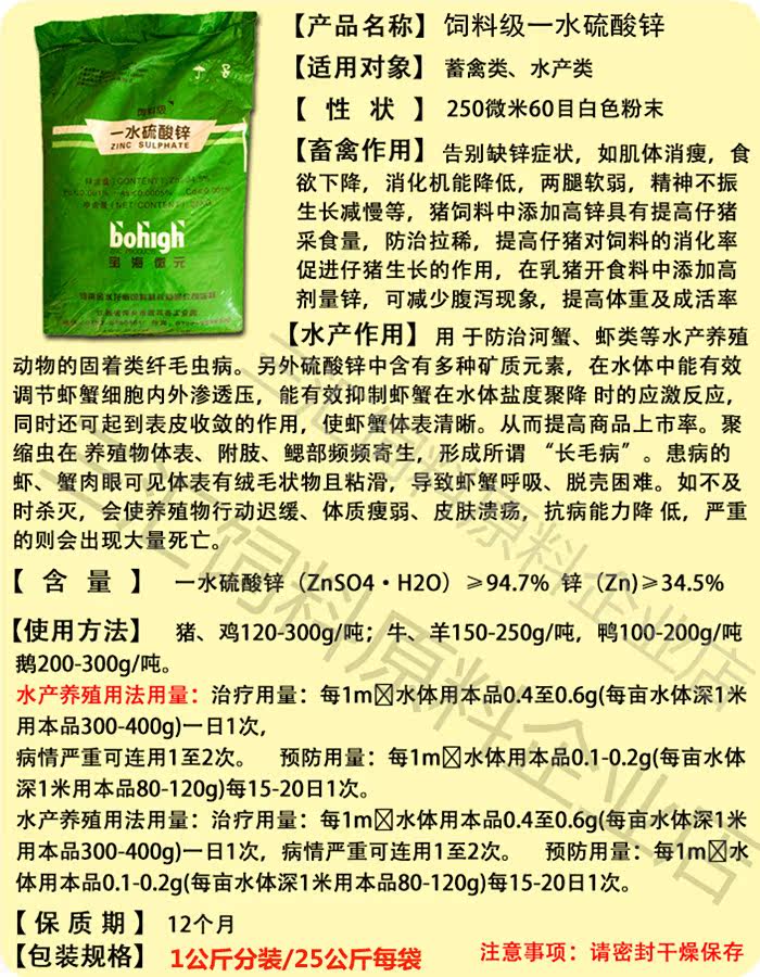 [FEED -Grade цинк сульфат] ингредиенты для корма/микроэлементы/добавки для кормления минералов/Бесплатная доставка