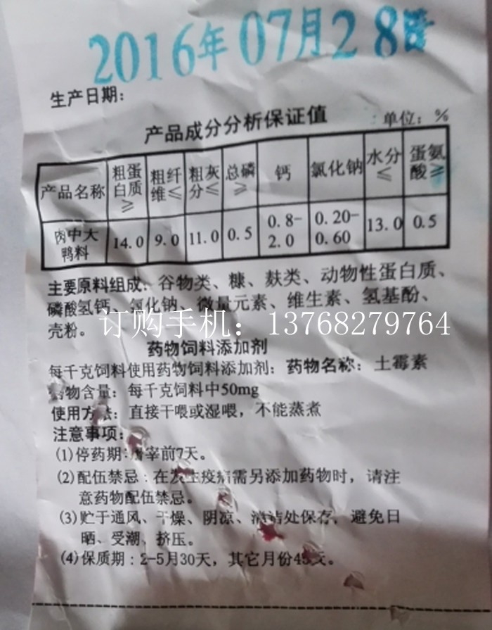 Полный корм для утки среднего размера 120 Юань/Пак * 80 Джин/Пакет Продажа 3 Юань/Котти