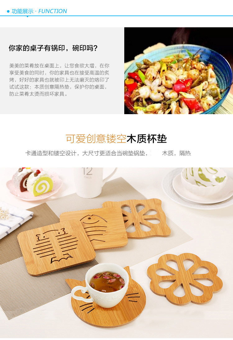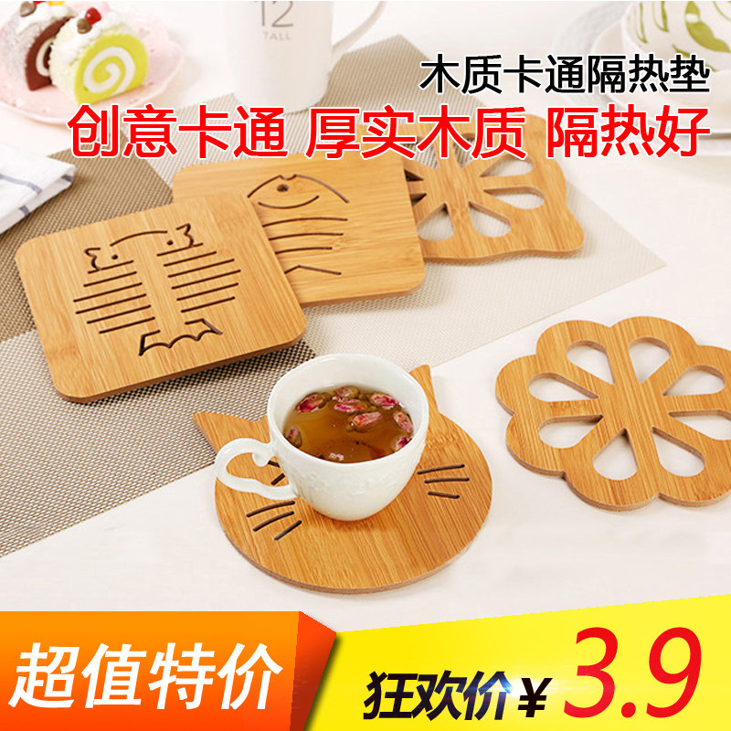 Деревянная мультипликационная теплоизоляльная монета Творческая домашняя проницательная чаша Потеной милый мультфильм водонепроницаемая водонепроницаемая подушка Рейбин
