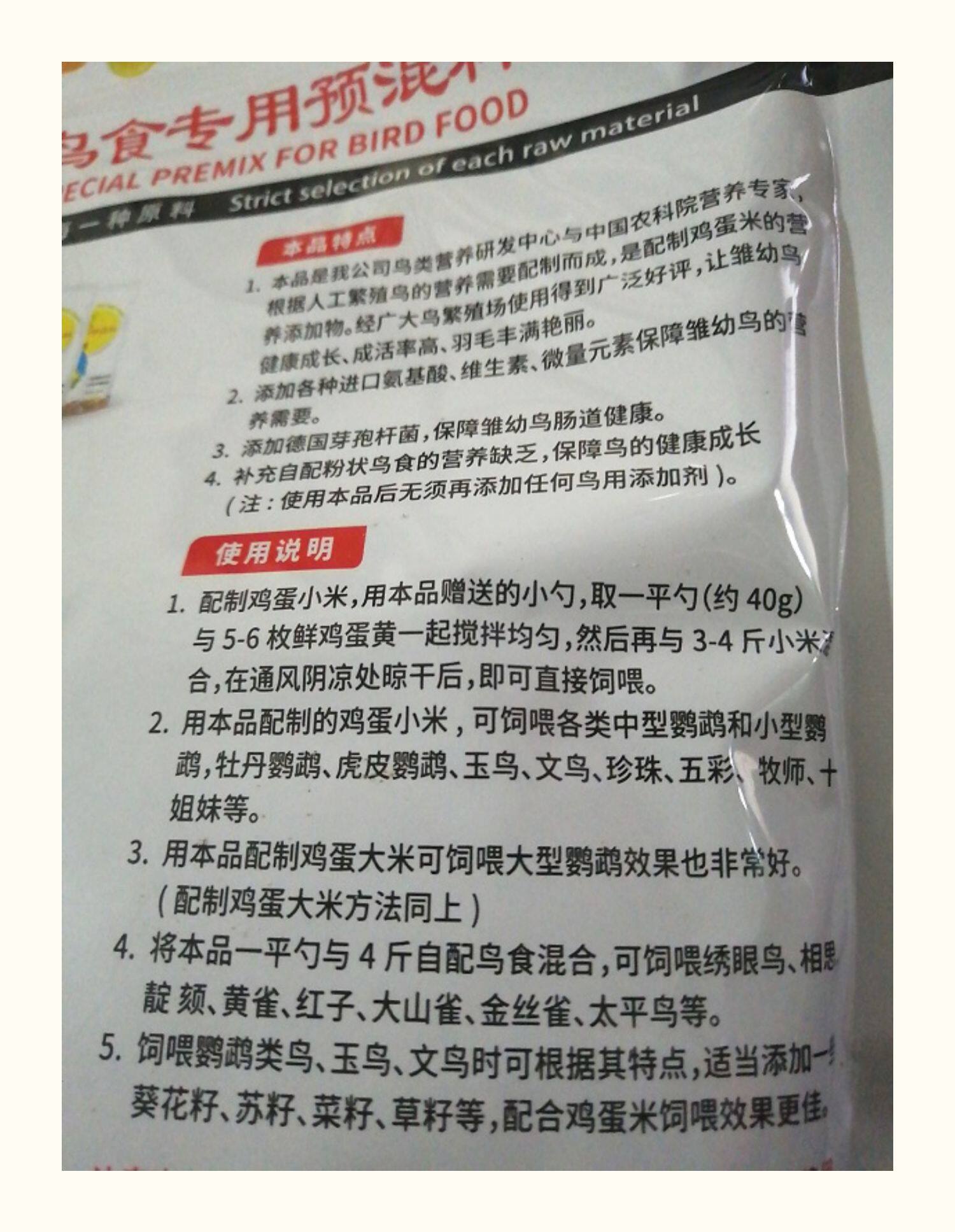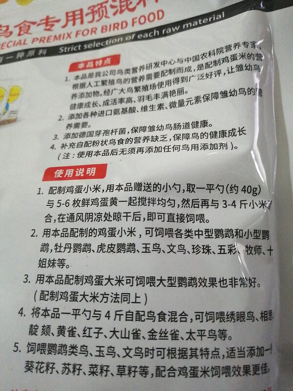 Bird Food Special Premier 500g Kaiyuan Brand Bird Bird Bird Edible Pourting Powd