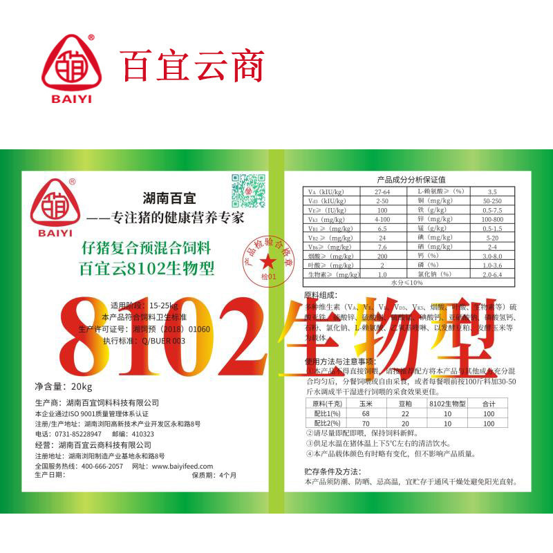Биологическая ферментация Baiyi Premix 8102 Свиновая шкала свиней для свиной двора - высокий лирик и пищи с низким содержанием бобов.