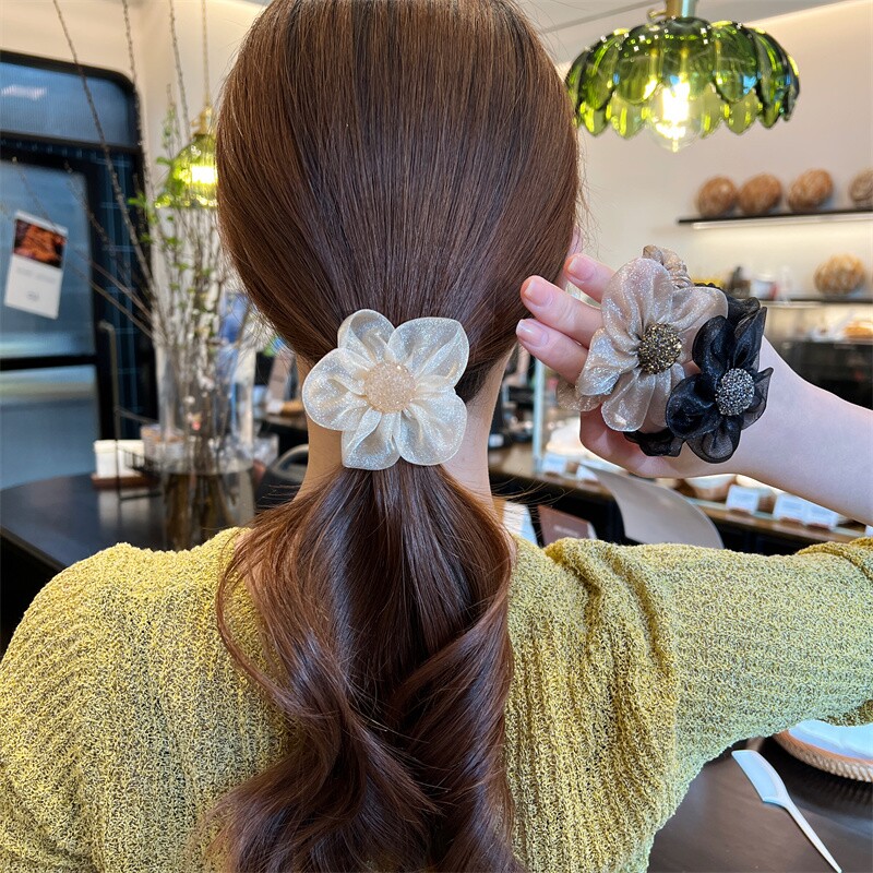 Ткань, аксессуар для волос на солнечной энергии, резинка для волос, хвостик, в цветочек, придает объем