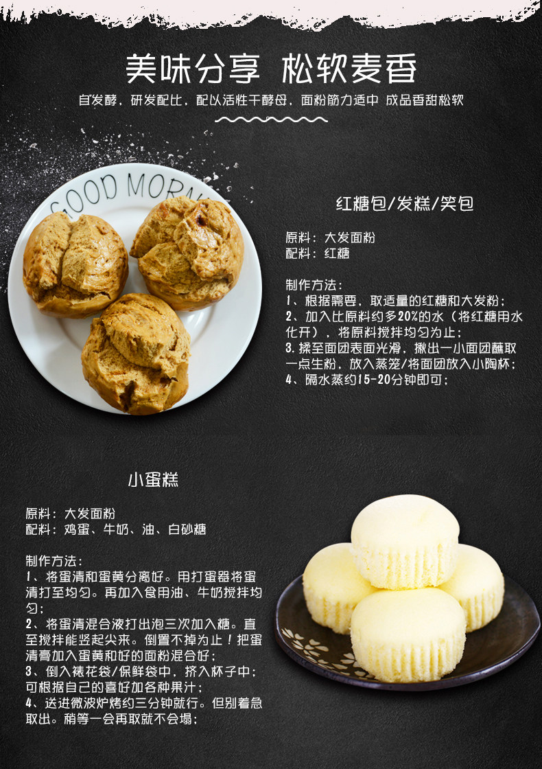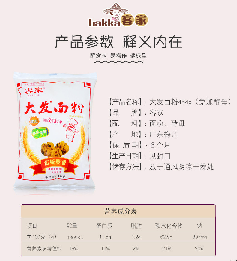 客家 Булочка с мукой, булочки, спонтанная мука, не нужно ждать брожения и запеченных пирожных, специальная порошка 454G*5
